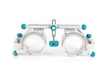 一種具有反轉拍功能的試鏡架,設計科學合理,結構簡單,使用時被檢查者頭戴本試鏡架,旋鈕彈動卡合機構的軸桿,通過受力傳遞,驅動翻轉機構促使翻轉鏡片發生翻轉.且根據使用檢查或訓練需要對鏡片進行移動,翻轉鏡片和固定鏡片利用兩球面透鏡鏡片同軸聯合,度數疊加的原理:即兩個異號球面透鏡同軸聯合后,形成一個新的球面透鏡,其屈光力為兩球面透鏡屈光力代數和.實現反轉拍和試鏡架的結合,配鏡者可以在試鏡的同時完成反轉拍的檢查和訓練,更好的實現視功能檢查或訓練,且檢測方便準確,實際使用效果佳。